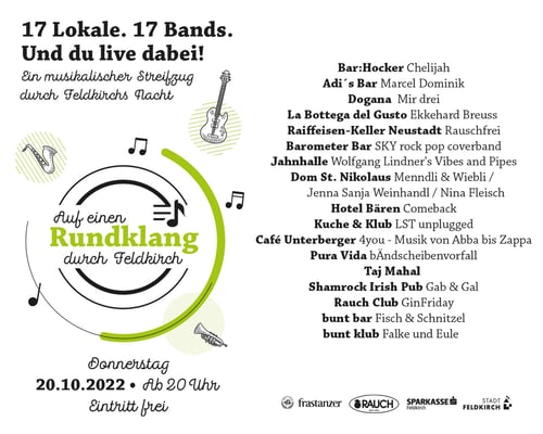 Rundklang, der musikalische Streifzug durch Feldkirch findet am Donnerstag, 20. Okt 2022 ab 20.00 Uhr statt.