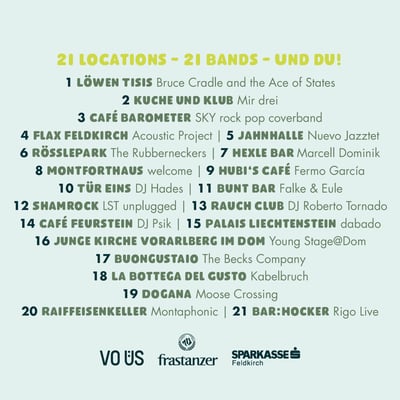 21 Lokale. 21 Bands. Und du live dabei!