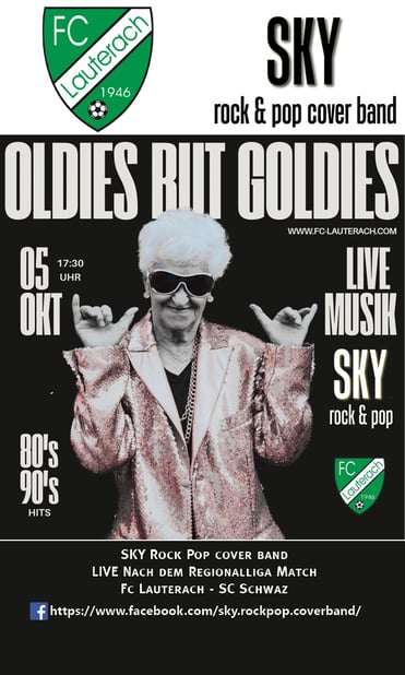 Öffentliche Events · 05. Oktober 2024 SKY Live Oldies but Goldies FC Lauterach FC Lauterach SKY LIVE Oldies but Goldies Party ab Ca 17:00 Uhr Nach Regionalliga abpfiff FC Lauterach - SC Schwaz Austro Pop, Rock-Pop; Country für alle was dabei..... tagPlaceholderTags: Live musik, gitarrenmusik, rundklang feldkirch, Musik & fussball, Live Musik nach Fussballspiel vorarlberg, Livemusik FC Lauterach Kommentar schreiben Kommentare: 0